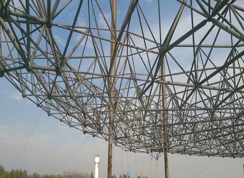 球形網架施工方案  1、工程概況和總體部署  網架采用正放四角錐形式,采用螺栓球接點,采用普通鋼管材,采用兩側焊接水平支座。  網架采用聚碳酸酯屋面,采用小立柱找坡的單向內排水方式,天溝鋼板厚度6mm。  2...